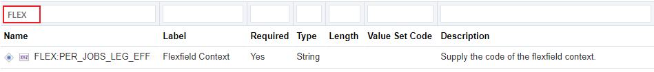 For example, _EEO1_CATEGORY(PER_JOBS_LEG_EFF=HRX_US_JOBS). This format tells HDL that the EEO1 Category segment belongs to the PER_JOBS_LEG_EFF flexfield in the HRX_US_JOBS context.