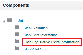In the Business Objects Details page, select Job Legislative Extra Information in the component hierarchy.