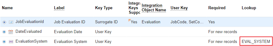When an attribute is lookup validated, the lookup type is listed. Here you can see that the attribute EvaluationSystem is validated by the EVAL_SYSTEM lookup type.