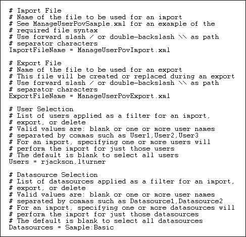 Type ManageUserPOV.cmd Export ManageUserPOV.properties.