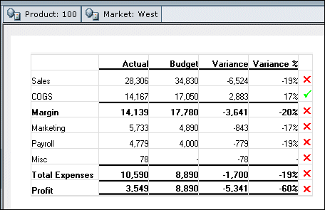 In this example, we change the Product member to 100, and the Market member to West for the rjackson user.