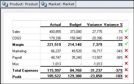In this example, the user POV for rjackson is set to the top-level member of the Product and Market dimensions. |