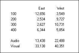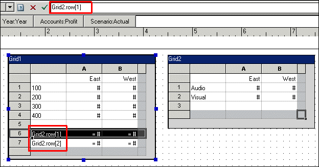 In the columns of Grid2, select the East and West members. In the rows, select the Audio and Visual members.