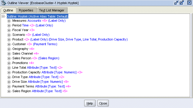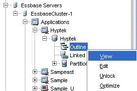 Select the Essbase Server tab, then navigate to the Hyptek database and double-click Hyptek.otl.