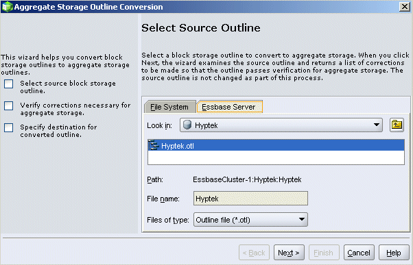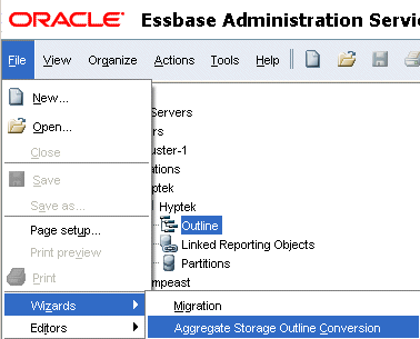 From time to time, you may wish to use an Essbase block storage (BSO) database as a starting point for an aggregate storage (ASO) database, say, as a test of expanded dimensionality. Essbase provides a wizard to help you convert the BSO outline to ASO.