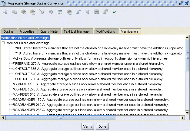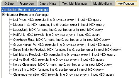 To fix the next several verification errors, change the Product dimension from a Stored to a Multiple Hierarchies Enabled dimension.