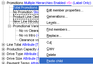 Select Total Promotions, then right-click and select Edit, and then Paste child.