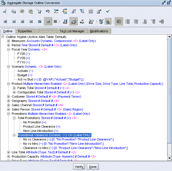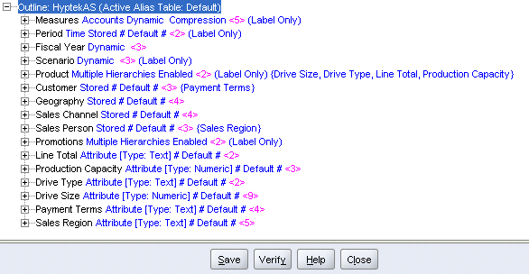 The Hyptek corporation, a manufacturer of hard disk drives, has developed an expanded outline for BSO cube Hyptek, used for sales analysis. Hyptek management would like you to convert the Hyptek database outline to ASO.