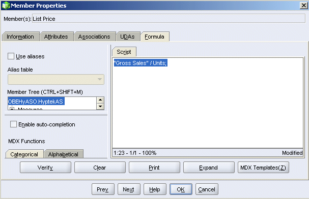 Member formulas in ASO applications use MDX syntax, which is different from the calculation script syntax used in BSO applications. You convert member formulas in Outline Editor.