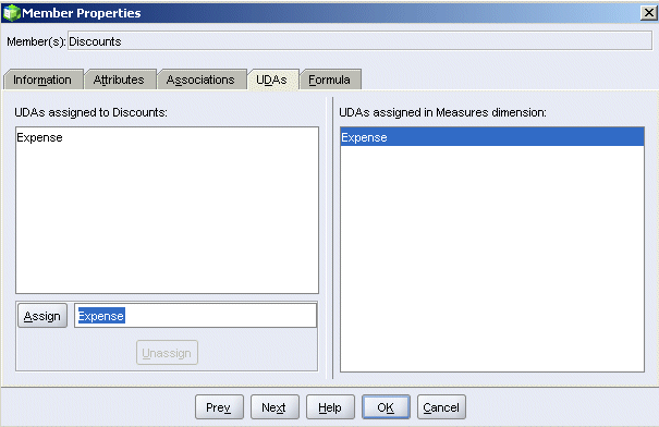 Repeat steps 1 through 4 to assign the Expense UDA to the following measures:
