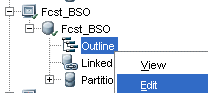 Expand database node Fcst_BSO, then right-click Outline and select Edit.