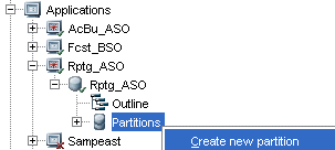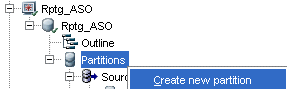 In the navigation panel, expand the Rptg_ASO database node, then right-click the Partitions node, and then select Create new partition.