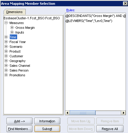 In the Area Mapping Member Selection dialog box, expand the Measures dimension, and select Gross Margin.