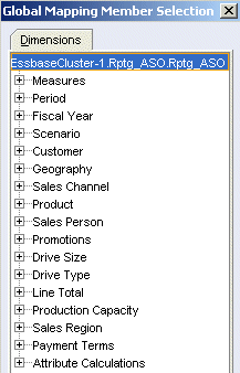 A comparison of the outlines shows that Customer dimension in Fcst_BSO matches the Customer dimension in Rptg_ASO. All of the level 0 source members can be added for Customer.