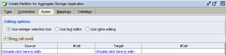 Ensure that you are in the Create Partition for Aggregate Storage Application window, with the Areas tab selected.