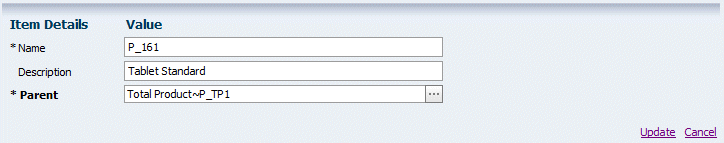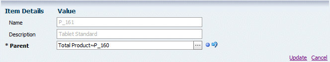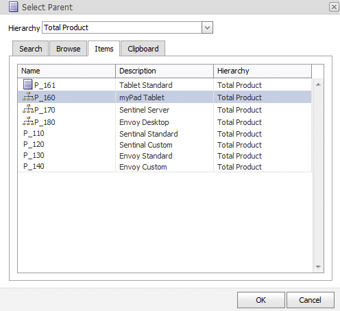 Select the Items tab and then select the Total Product~P_160 node as the Parent for the P_161 request item.