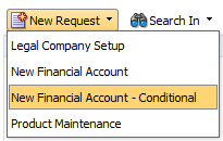 Select New Request and then New Financial Account - Conditional.