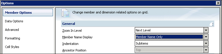 In the General section, in the drop-down list for Member Name Display, select Distinct Member Name Only.