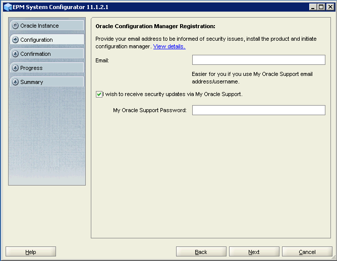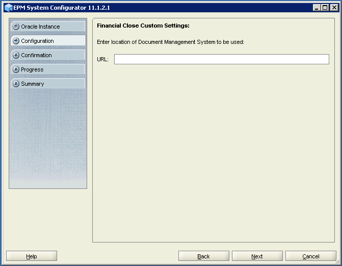 If you want to integrate Oracle Enterprise Content Management with your Financial Close Management application, enter the URL for Oracle Enterprise Content Management, and click Next.