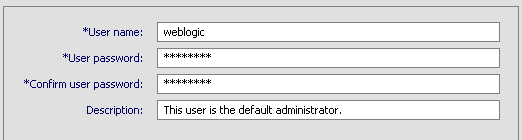 On the Configure User Name and Password screen, enter a user name and password for the WebLogic domain administrator. You use this domain administrator name and password for the EPM components as well. In this example, the domain administrator name is weblogic.
