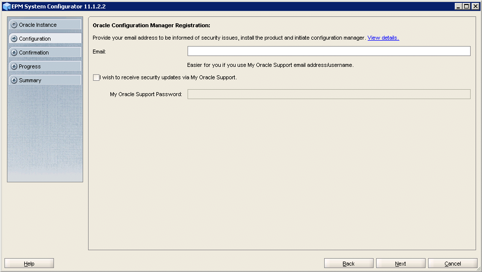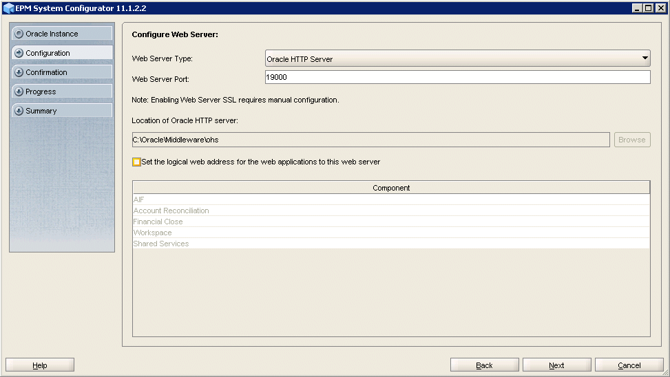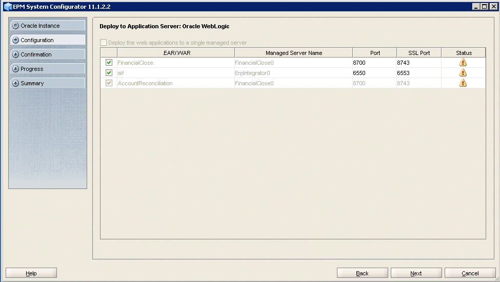Select the EPM Oracle instance to which this configuration would be applied, and click Next.