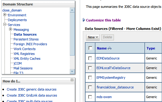 Note: If you are not sure, then you can get above information from the mds_owsm datasource from the WebLogic For Account Reconciliation Manager configuration: