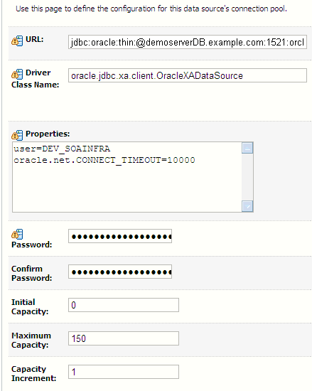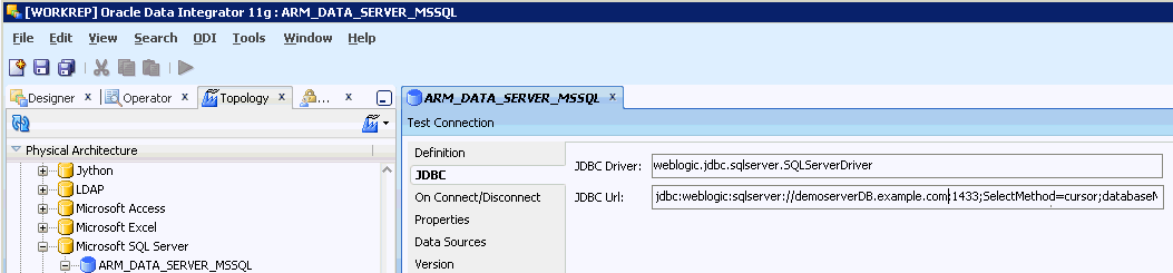 Click the JDBC tab on the left side of the ARM_DATA_SERVER window, and enter the JDBC Driver and URL. Example for Oracle JDBC URL sample:; jdbc:oracle:thin:@demoserverDB.example.com:1521:orcl