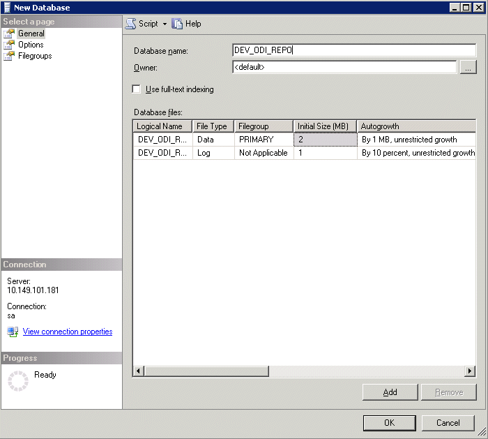 b. In the General tab, select SQL Server authentication, and enter values for Login Name, password and Confirm password