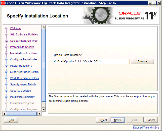 On the Specify Installation Location screen, verify that the Middleware Home directory is the directory that you selected when you installed the EPM Components, and click Next. Be sure to modify the default Middleware Home location if needed.