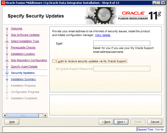Provide the necessary information if you want to be informed of security updates by email, otherwise
