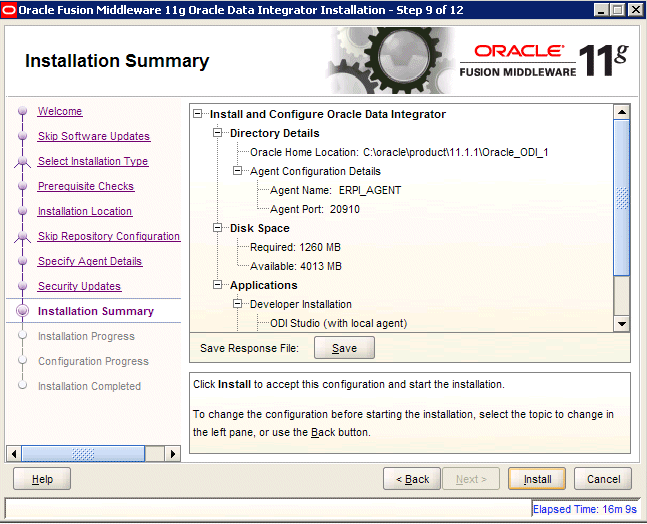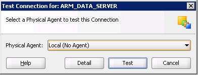 Choose No Agent to test the connection (note that you haven’t configured ODI Agent yet) and click Test.