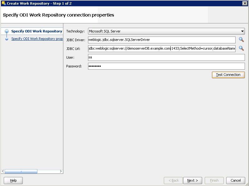 Example for MS SQL Server - the databaseName is for the FCM database. JDBC URL sample: