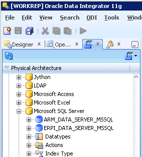 If you're not already logged in to ODI Studio as WORKREP (SUPERVISOR/SUNOPSIS) do so now.