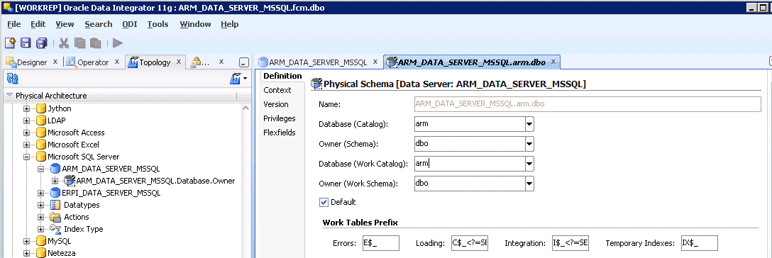 Expand the desired server (ARM_DATA_SERVER): For Oracle, double click to open Physical schema (ARM_DATA_SERVER.Schema)