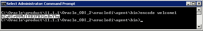 It is required to get an encrypted password for ODI_MASTER_ENCODED_PASS in odiparms.bat: a. In <Oracle_Home>\product\11.1.1\Oracle_ODI_1\oracledi\agent\bin run encode.bat from b. Copy the encrypted password output and add it to value of ODI_MASTER_ENCODED_PASS in odiparms.bat