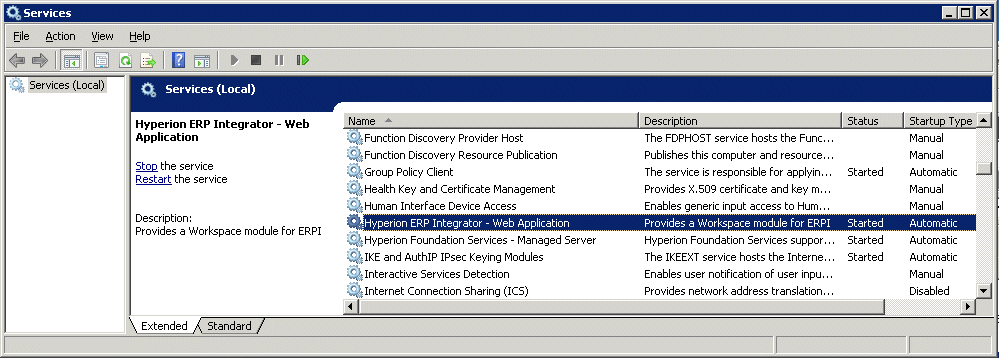 Stop the Hyperion ERP Integration - Web Application (Machine B) service in the Services window.