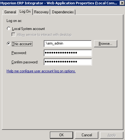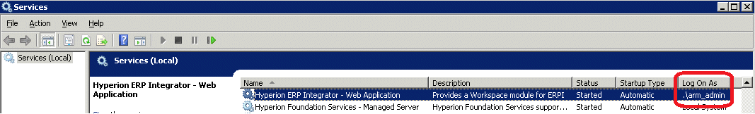 To set Log On As for the ERPI service, right click on the service and click on Properties.