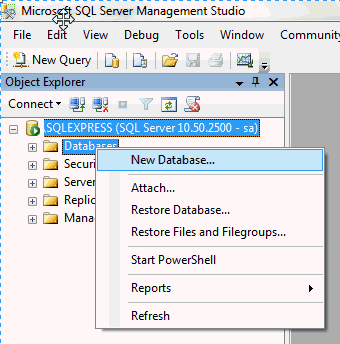 Install SQL Server and log in to Microsoft SQL Server Management Studio as sa user.
