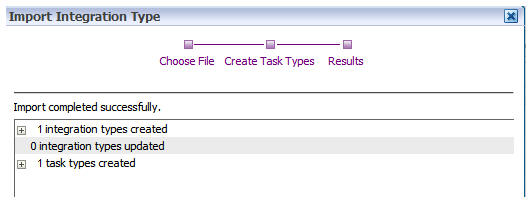 In the Manage Integrations Types dialog box toolbar, click Import.