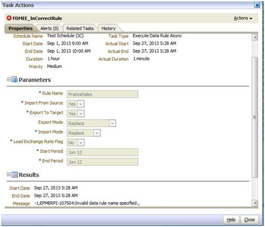 Case 1: Invalid Data Rule name specified. Reopen the task, correct the Rule Name parameter, and save. This should re-execute the task.