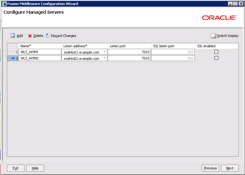 On the Configured Manage Servers screen, click Add to define the two servers below, and then click Next.
