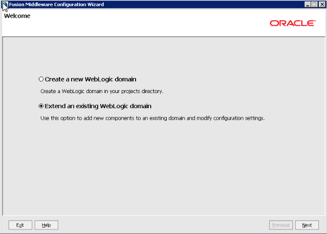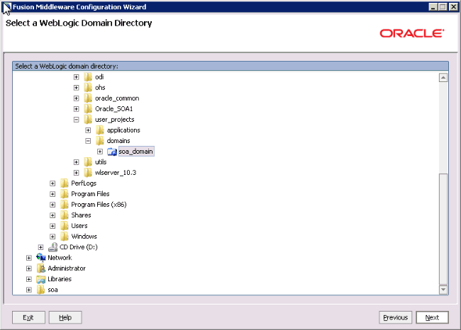 Run the Configuration Wizard from the SOA home directory to create a domain containing the Administration Server and Oracle Web Services Manager. Later, you will extend the domain to contain SOA components.