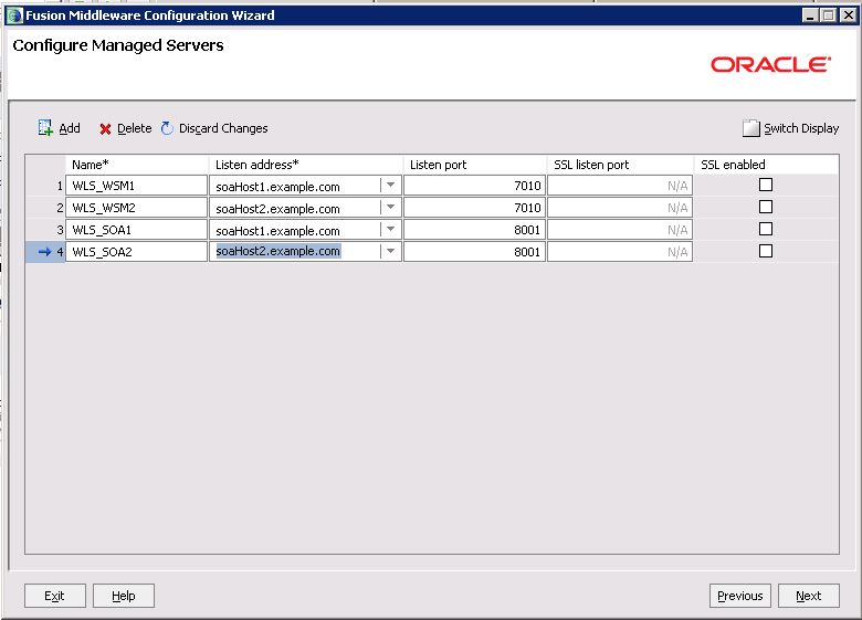 Note: SOAHOST1 and SOAHOST2 should be replaced with actual Host names during installation.