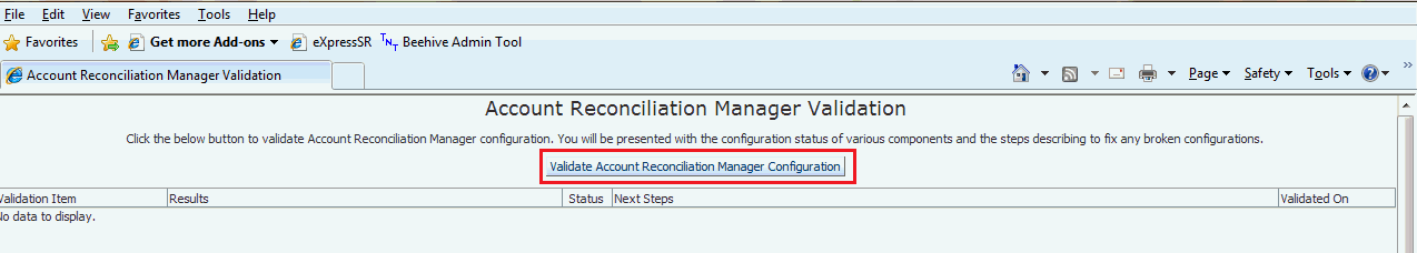 To validate the close manager configuration, click the Validate Financial Close Manager Configuration button