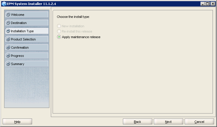 On the Installation Type screen, select Apply maintenance release and click Next.
