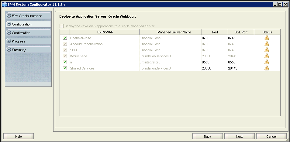 Make sure the option ‘Deploy the Java web applications to single managed Server’ is unchecked and accept the default application server deployment settings, and click Next.