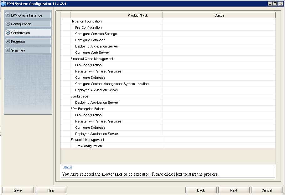 On the Confirmation screen, click Next to launch the configuration.