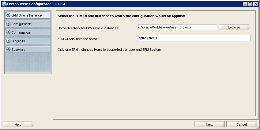 Select EPM Oracle instance to which this configuration would be applied, and click Next.