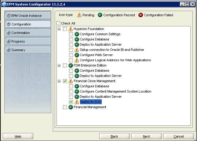 After configuring EPM products, you need to run the EPM System Configurator again to deploy to SOA.