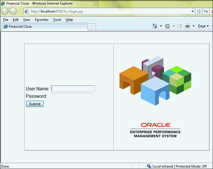 - Where FCMPORT is Listening port of FinancialClose0 managed Server in the WebLogic console.